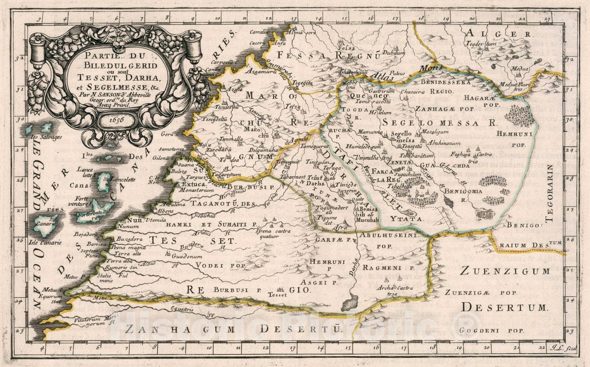 Historic Map : Africa, Northern 1656 Partie Du Biledul-Gerid ou Sont Tesset, Darha, et Segelmesse &c. , Vintage Wall Art