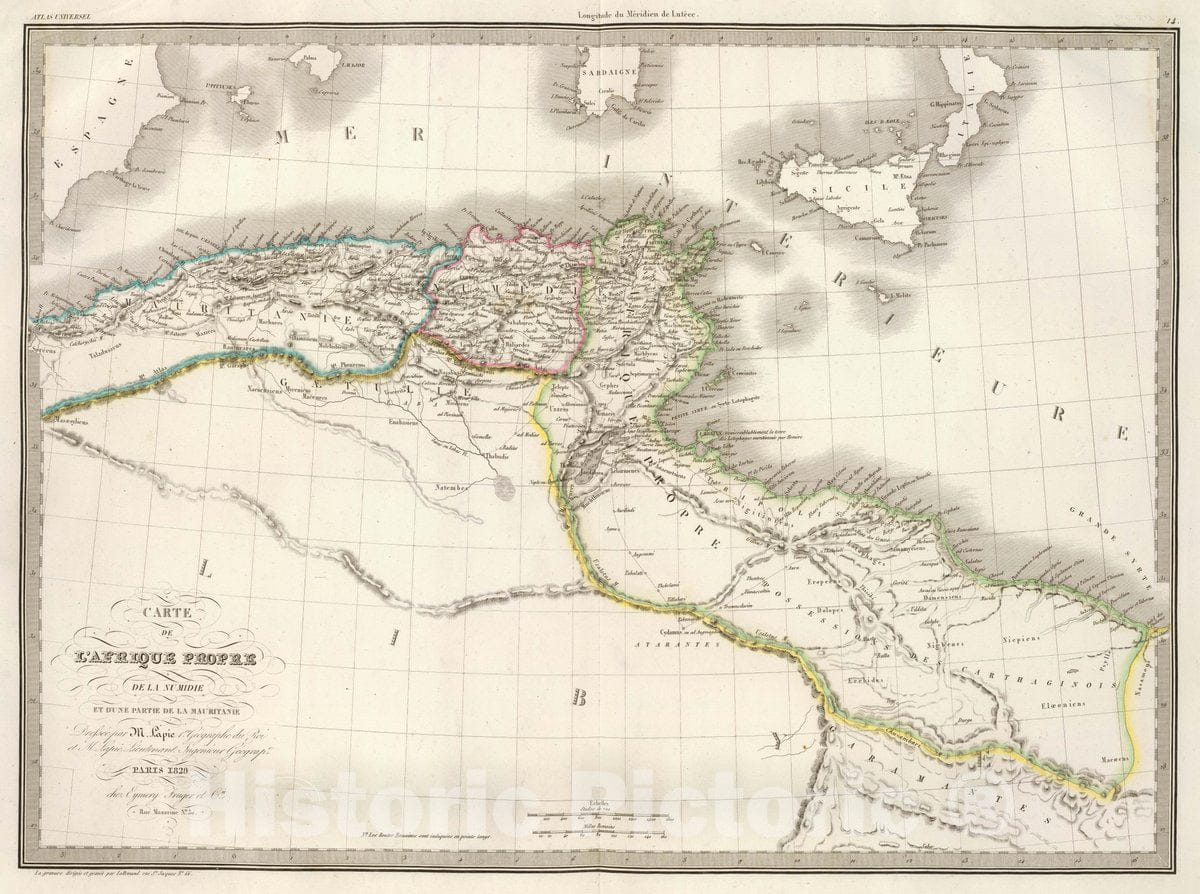 • .Historic Map : Algeria; Tunisia, Africa, North Carte de l'Afrique Propre. Geographe du Roi et M. Lapie, 1829, Vintage Wall Art