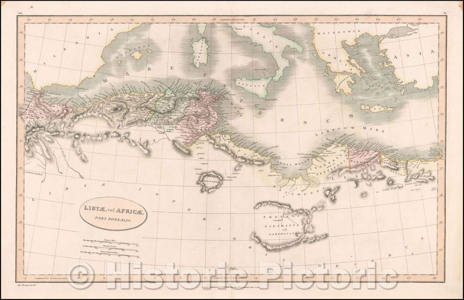 Historic Map - Libyae, vel Africae, Pars Borealis/Map of the north coast of Africa and the Mediterranean, 1809, Charles Smith - Vintage Wall Art