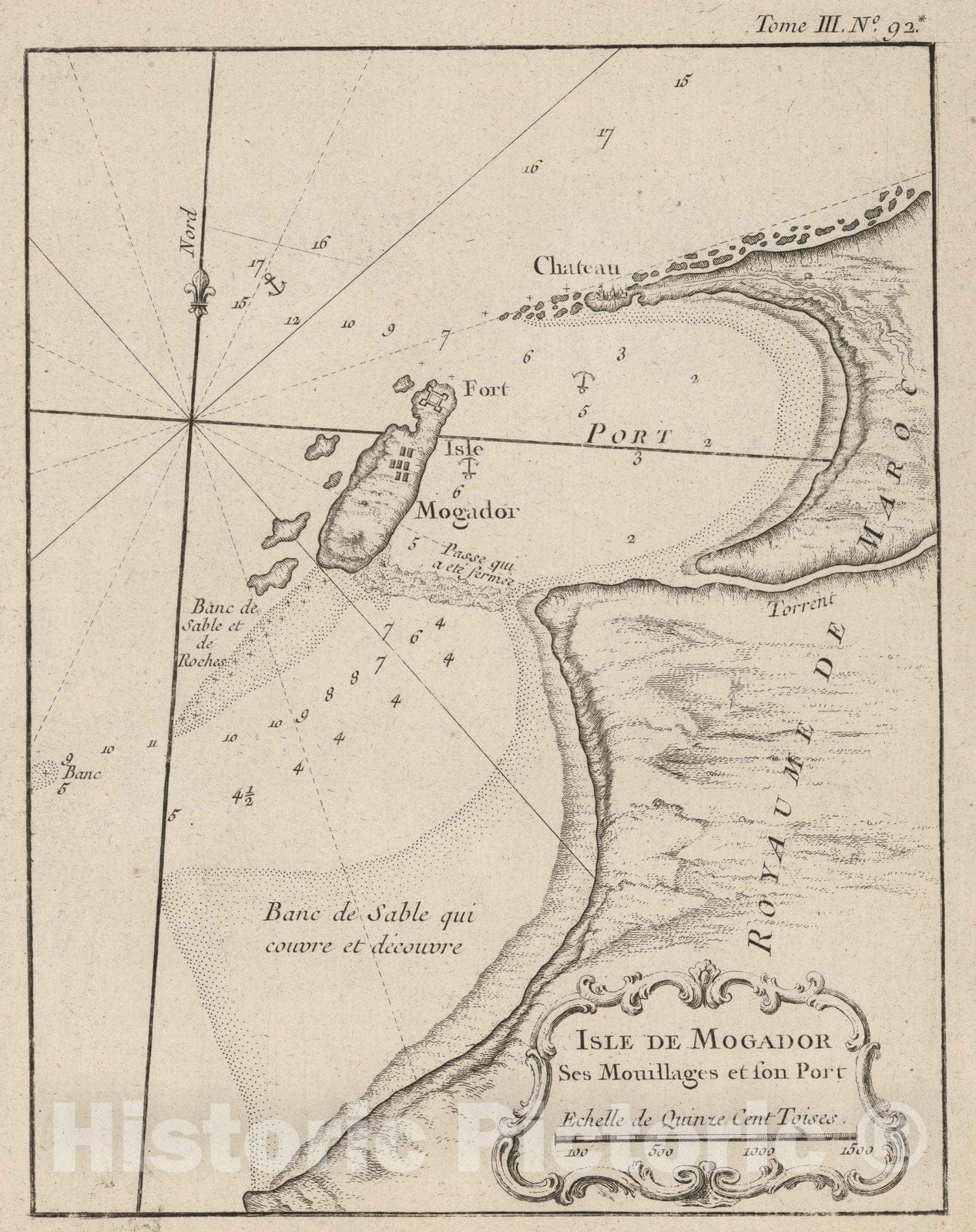Historic Map : Morocco, North Africa 1764 Isle de Mogador ses Mouillages et son Port , Vintage Wall Art