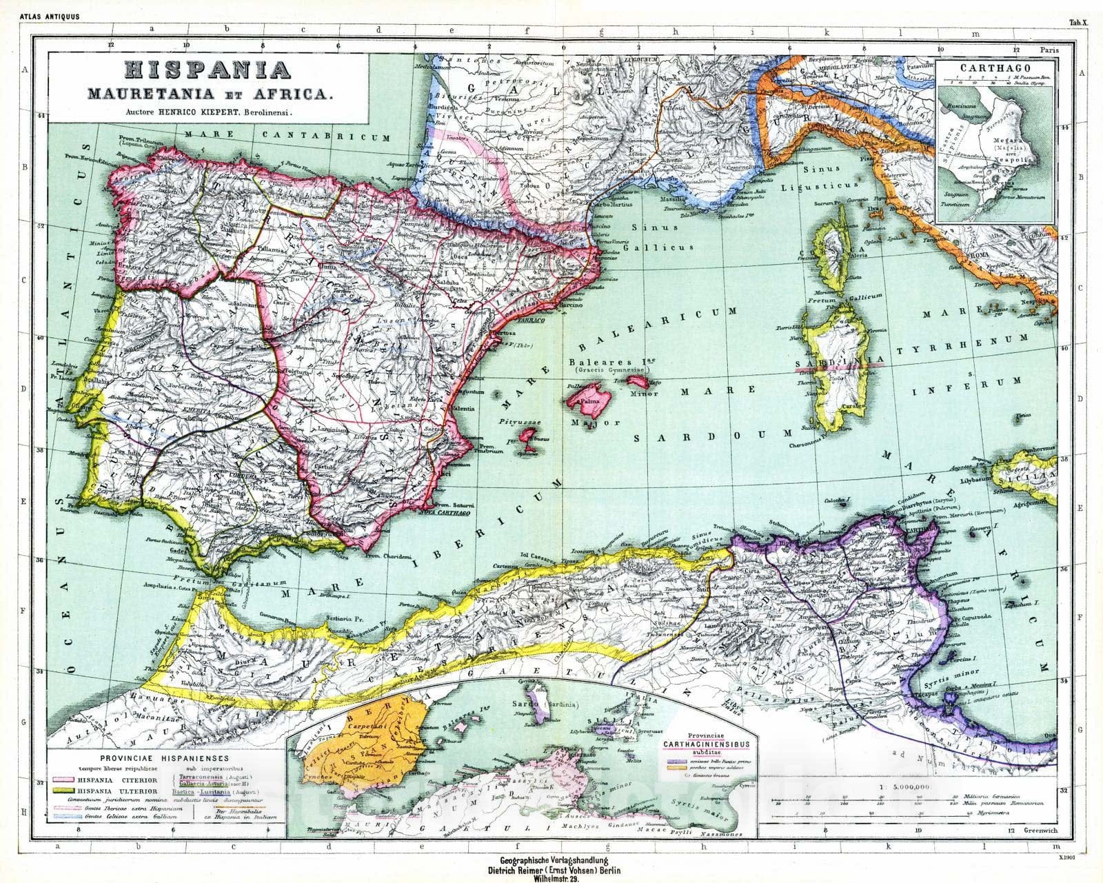 Historic Map : Portugal; Spain, Africa, North 1903 Hispania, Mauretania et Africa. , Vintage Wall Art