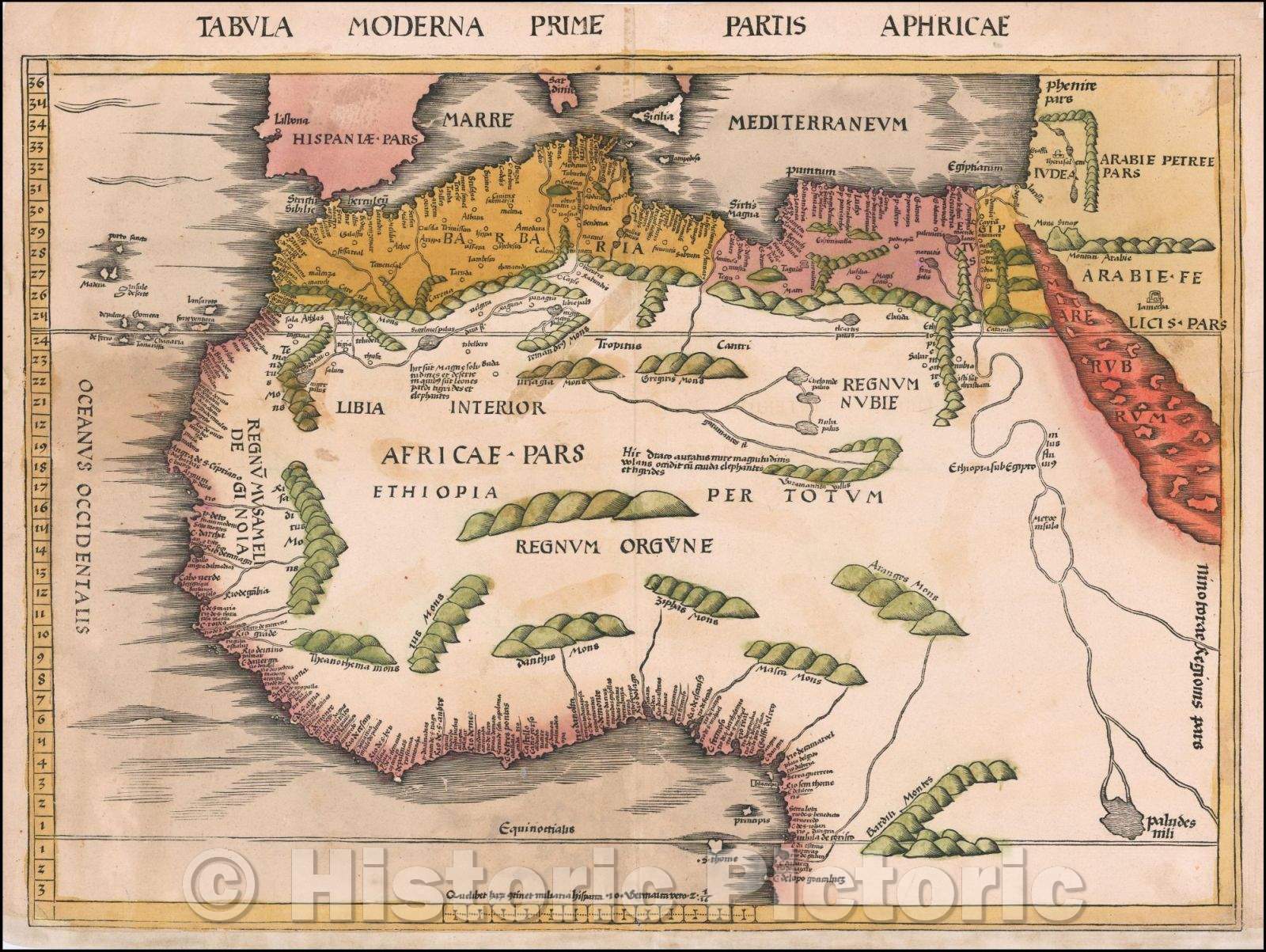 • .Historic Map - Tabula Moderna Prime Partis Aphricae/Modern Map of the North Part of Africa, 1513, Martin Waldseem?ller - Vintage Wall Art