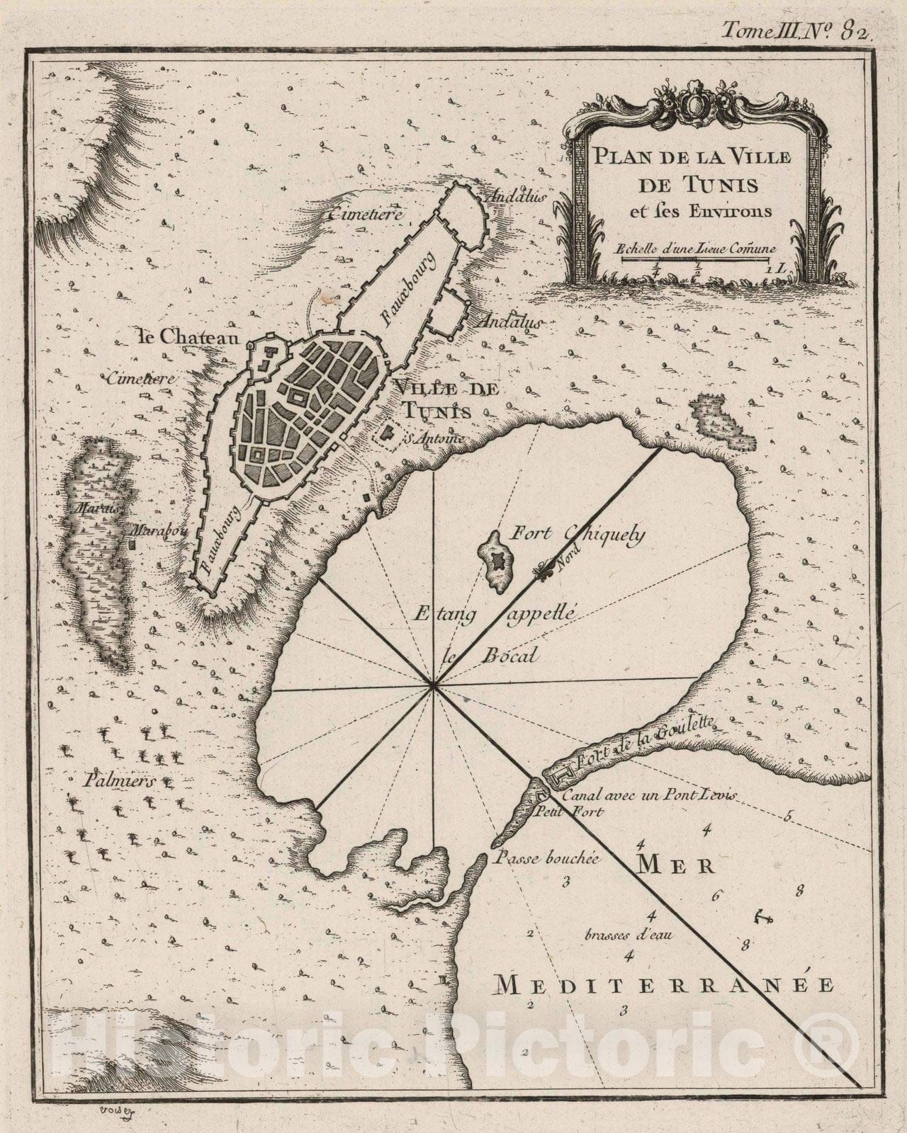Historic Map : Tunisia , Tunis (Tunisia), North Africa 1764 Plan De La Ville De Tunis et ses Environs , Vintage Wall Art