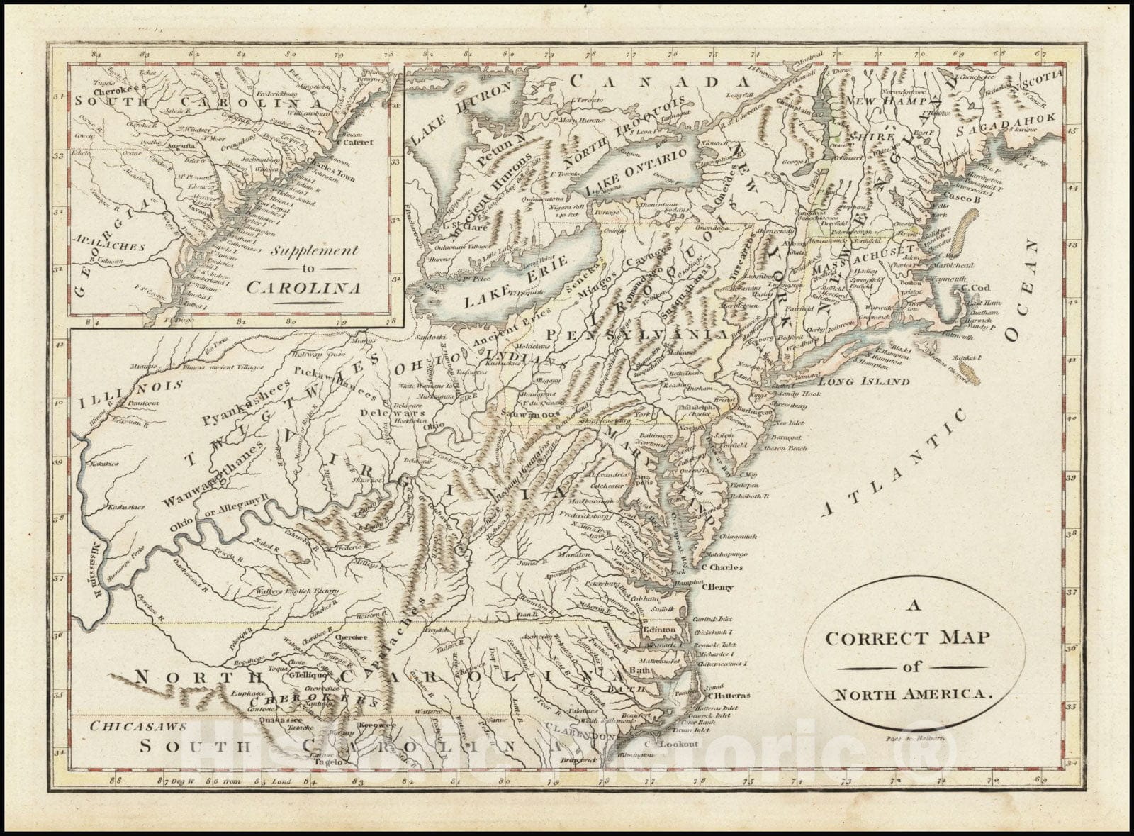 • .Historic Map : A Correct North America, 1800, Vintage Wall Art