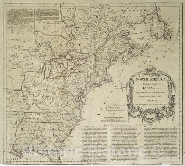 Historic 1755 Map - North America From The French Of Mr. D'Anville : Improved With T