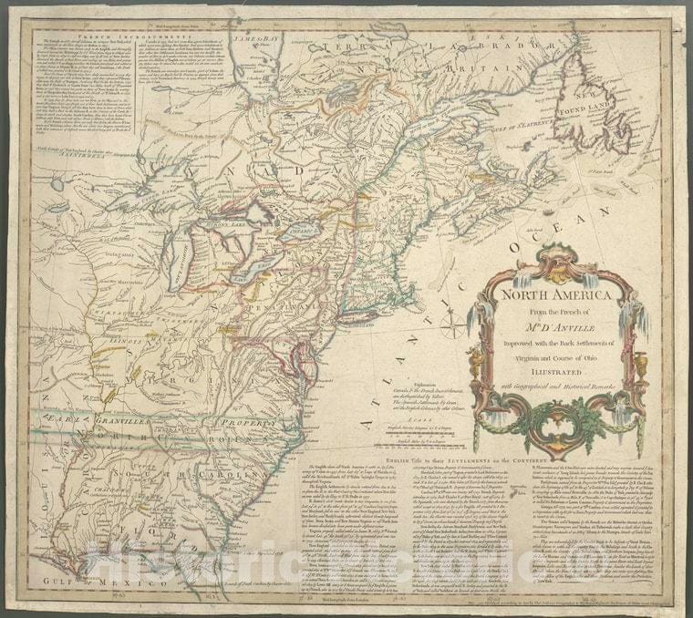 Historic 1755-05 Map - North America From The French Of Mr. D'Anville : Improved With T