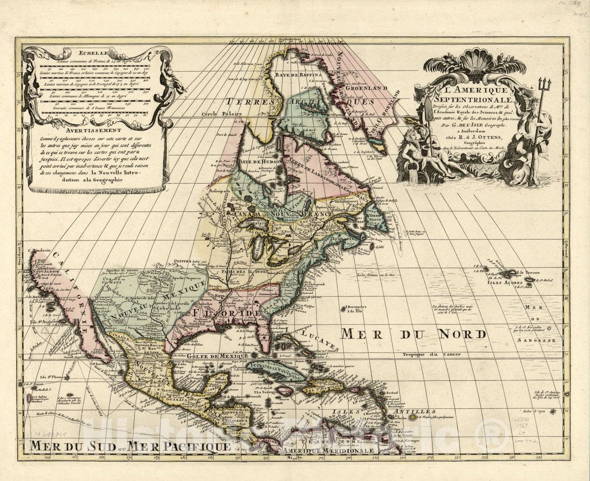Historic 1760 Map - L'Amerique Septentrionale : Dressee Sur Les Observations De Mrs. - North America - North America - Maps - Early Works To 1800 - Vintage Wall Art