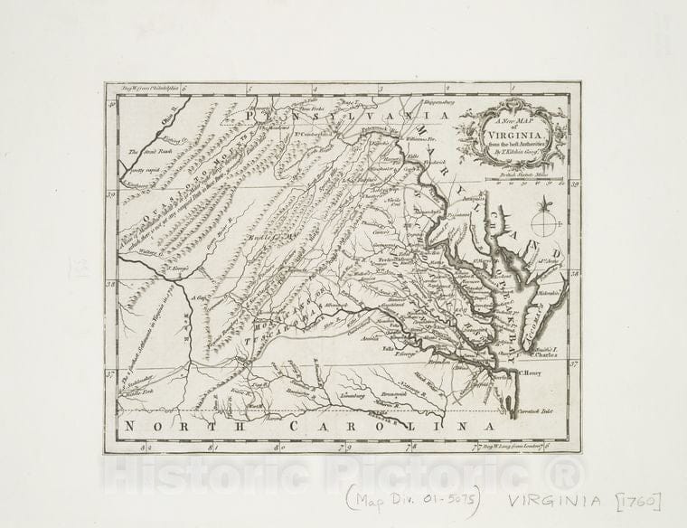 Historic 1761 Map - A New Map Of Virginia : From The Best Authorities - Virginiamaps Of North America. - Virginia