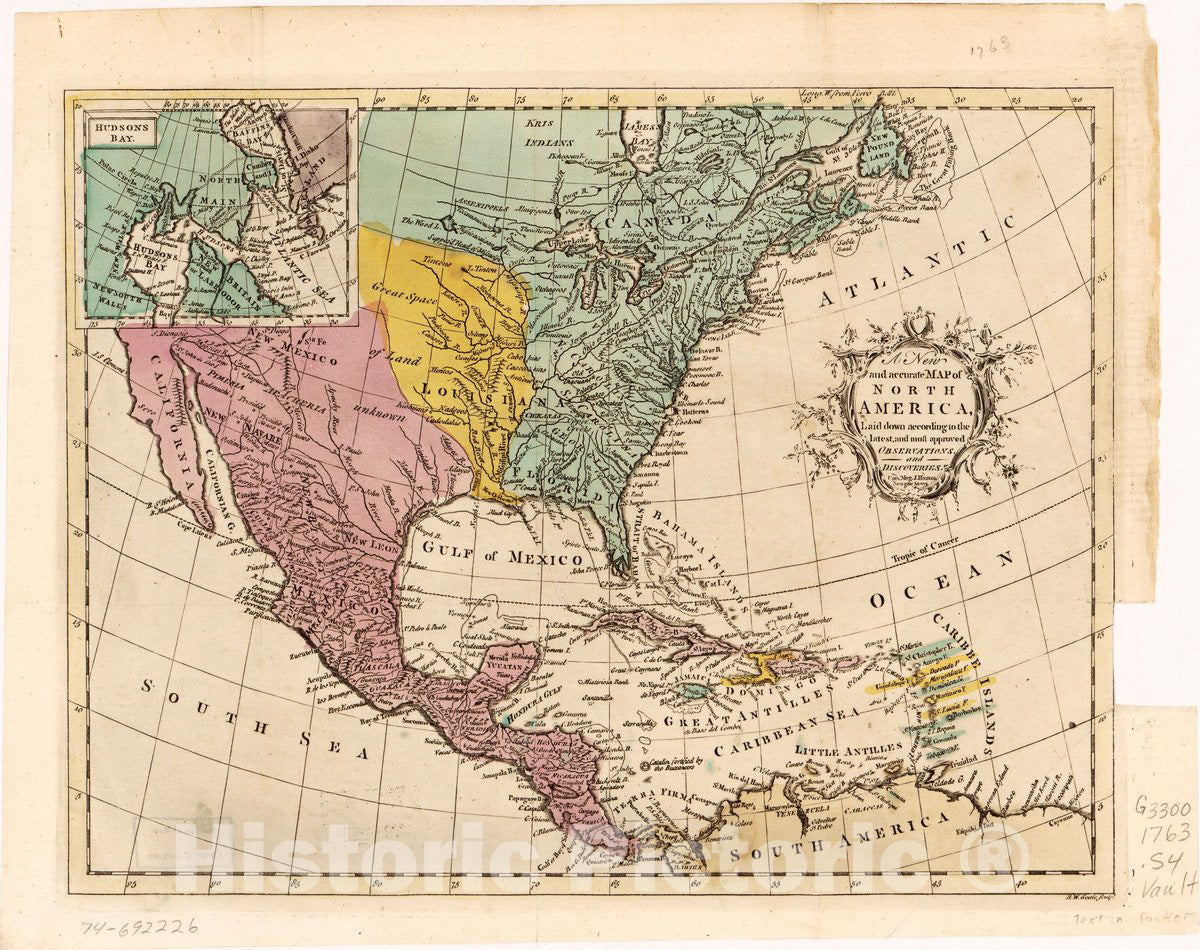 • Historic 1763 Map - A New and Accurate map of North America, Laid Down According to The Latest, and Most Approved observations and Discoveries.