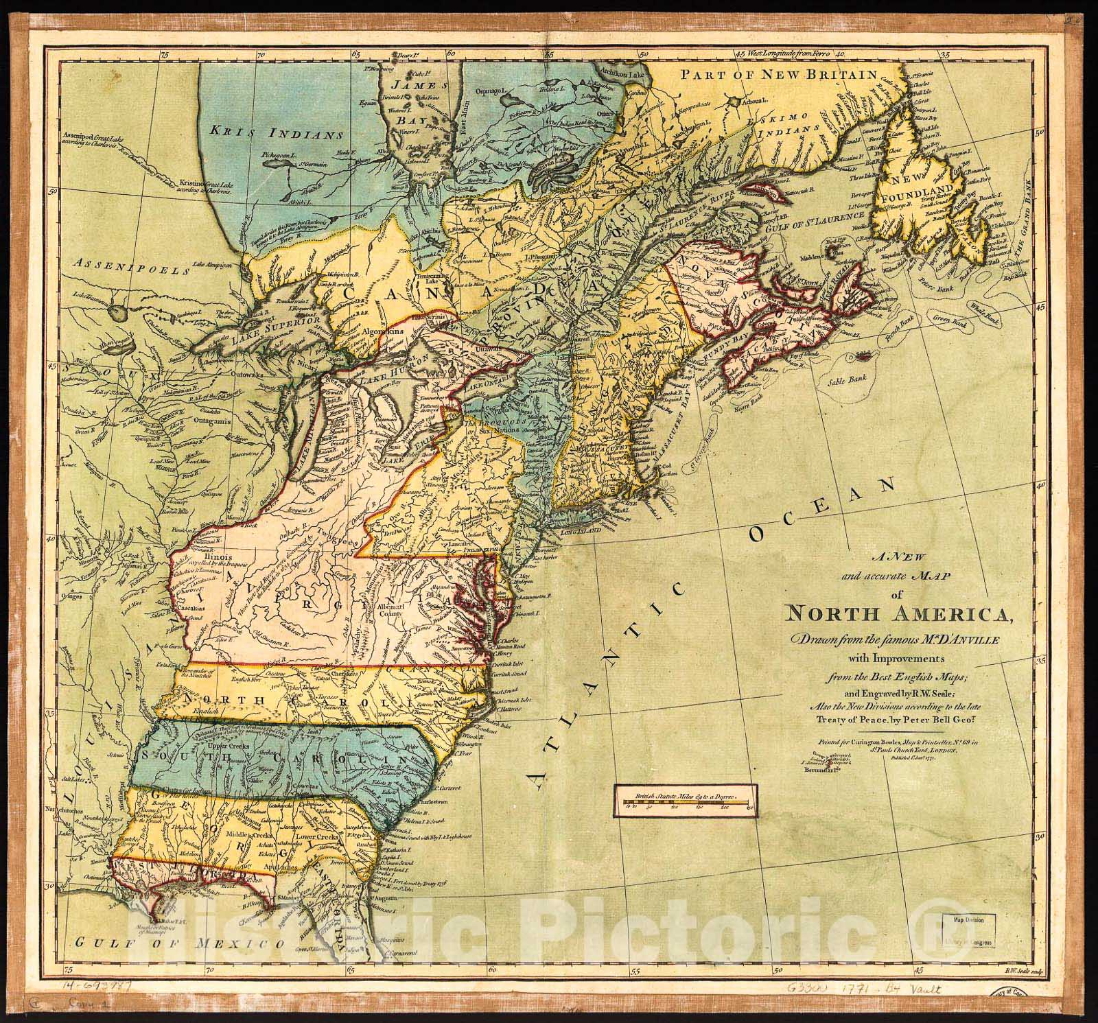 • .Historic 1771 Map - A New and Accurate map of North America, 1