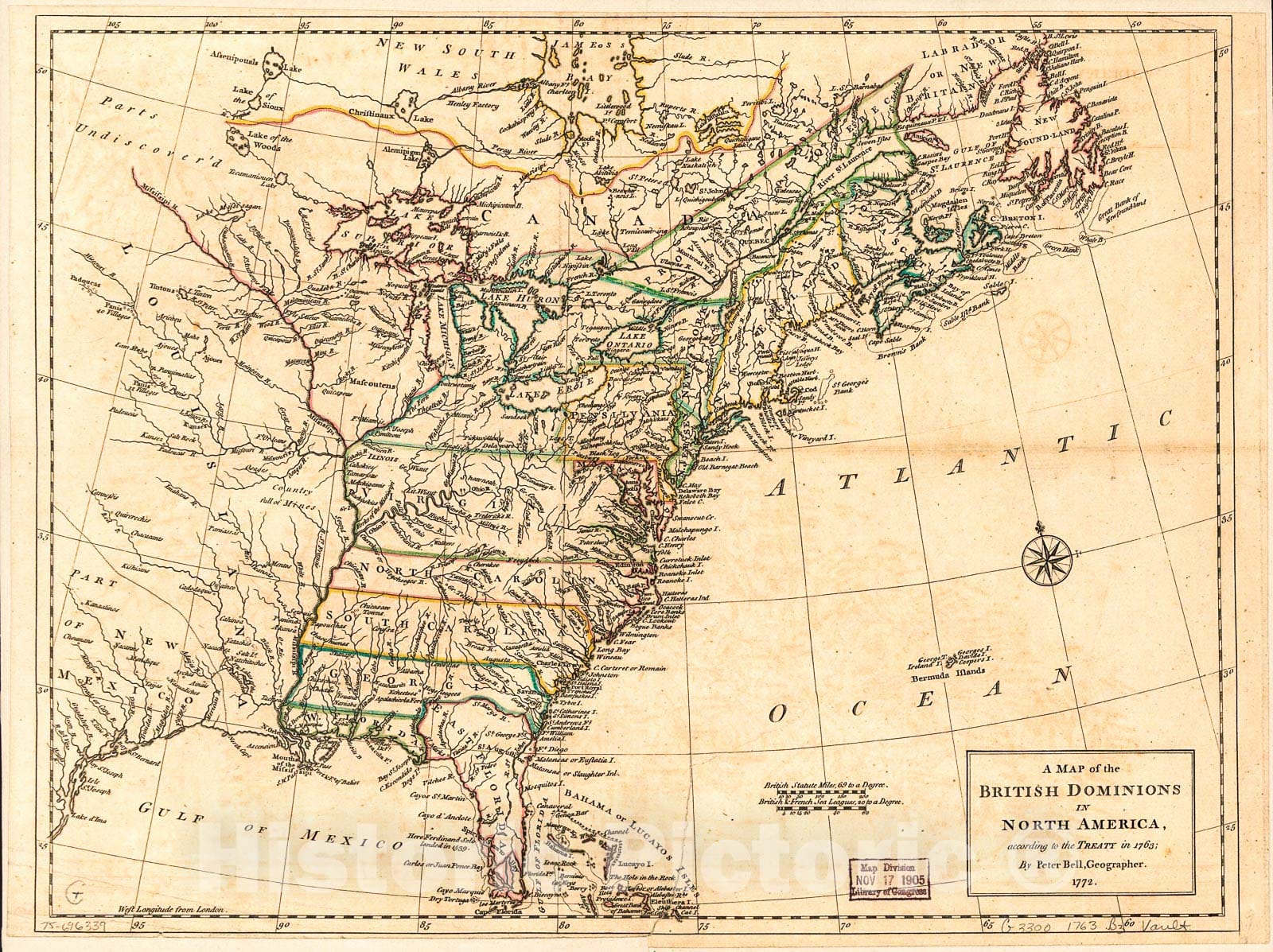 Historic 1772 Map - A map of The British dominions in North America, According to The Treaty in 1763.