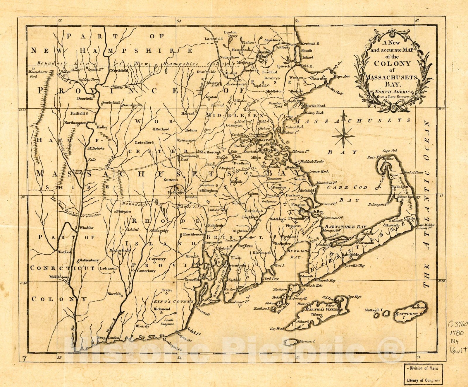 Historic 1780 Map - A New and Accurate map of The Colony of Massachusets i.e. Massachusetts Bay, in North America, from a Late Survey.