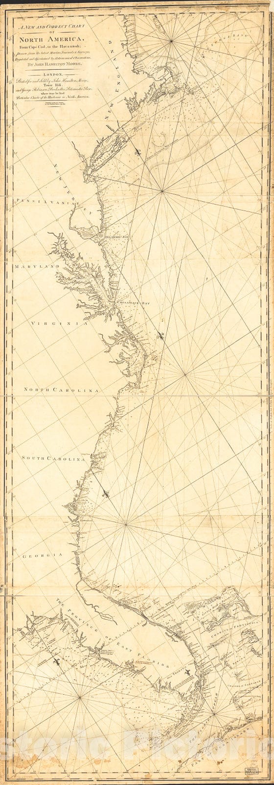 Historic 1784 Map - A New and Correct Chart of North America from Cape-Cod, to The Havannah;