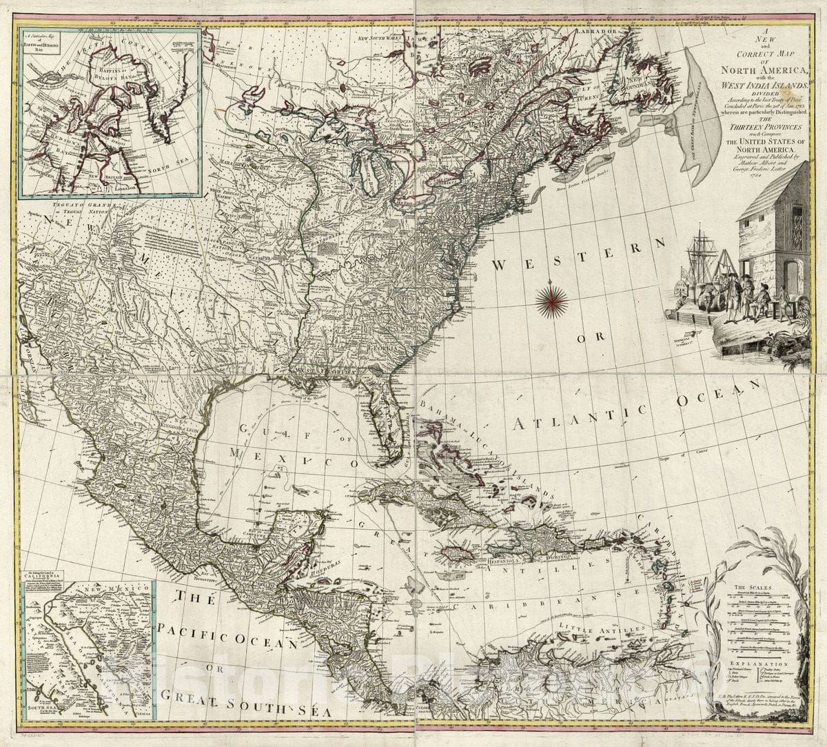 Historic 1784 Map - A New And Correct Map Of North America With The West India Islan - Vintage Wall Art