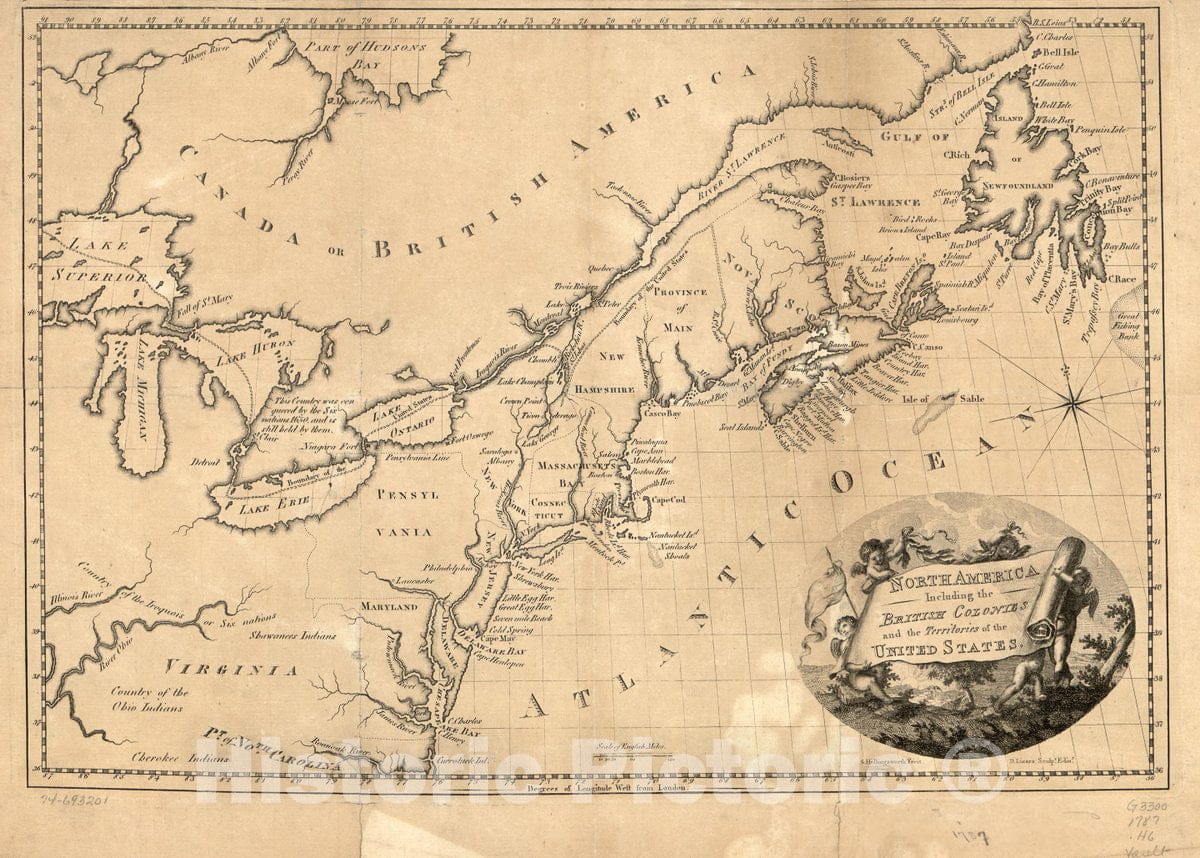 • Historic 1787 Map - North America Including The British Colonies and The Territories of The United States.