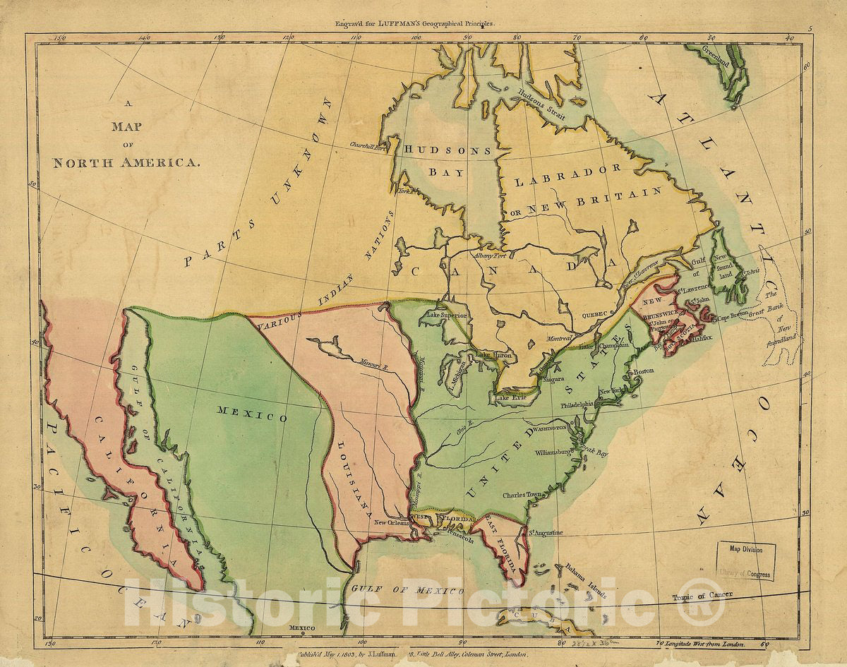 • Historic 1803 Map - A map of North America ; Outline of North America, in correspond to The map.