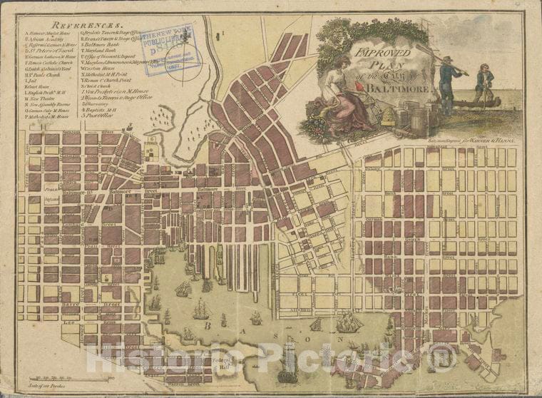 Historic 1805 Map - Improved Plan Of The City Of Baltimore. - Baltimore (Md.) - Maps - Marylandmaps Of North America. - Maryland