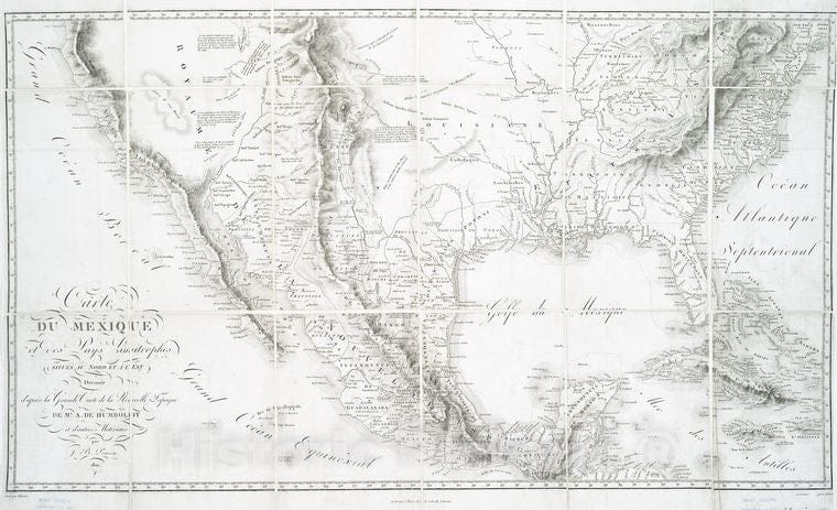 Historic 1811 Map - Carte Du Mexique Et Des Pays Limitrophes Situes Au Nord Et A L' - Mexico- United Statesmaps Of North America. - Mexico - Vintage Wall Art