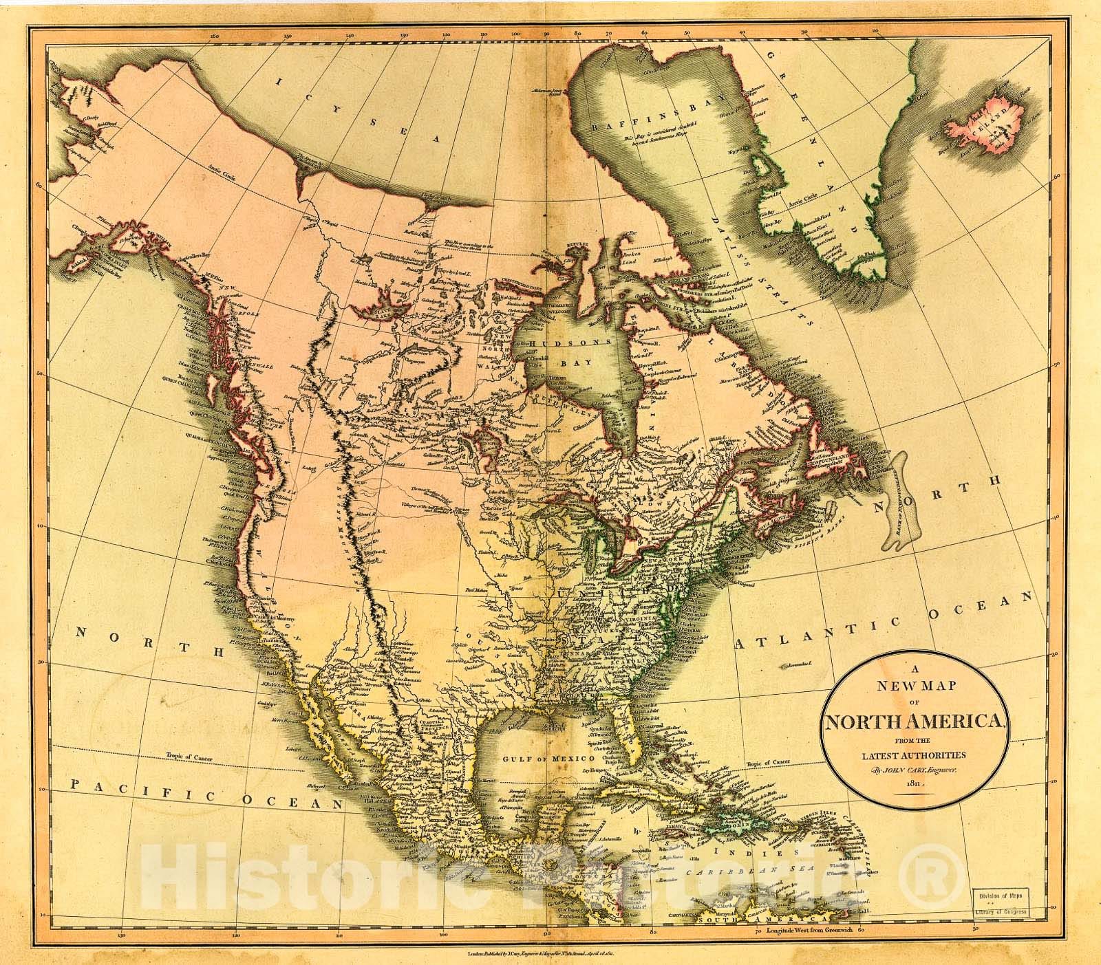 Historic 1811 Map - A New map of North America from The Latest Authorities