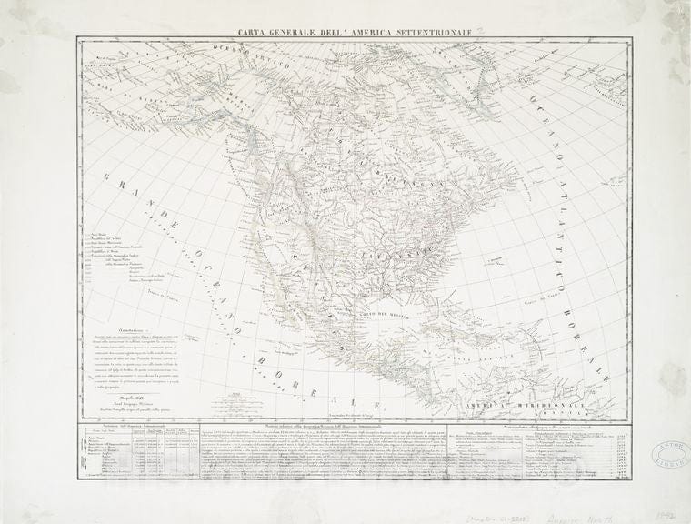 Historic 1842 Map - Carta Generale Dell' America Settentrionale. - North America - North America - Maps Of North America.