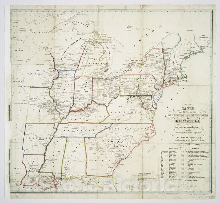 Historic 1845 Map - Karte Der Katholischen Dioecesen Und Deren Missionen In Nordamerika - United Statesmaps Of North America.