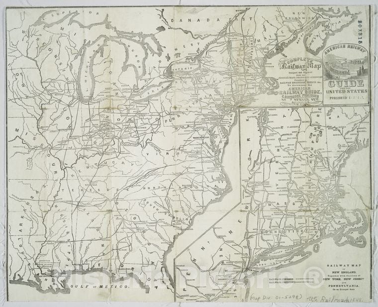 Historic 1848 Map - Complete Railway Map Designed And Engraved From The Original Map - United Statesmaps Of North America.