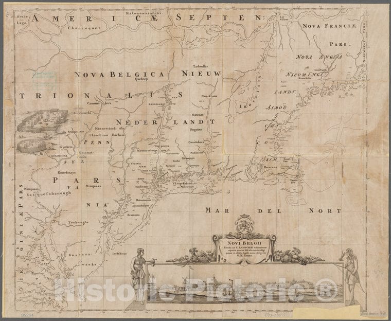 Historic 1854 Map - Novi Belgii: Tabula Ad N. J. Visscheri Delineationem Repetita Qu - North Americamaps Of North America. - Vintage Wall Art