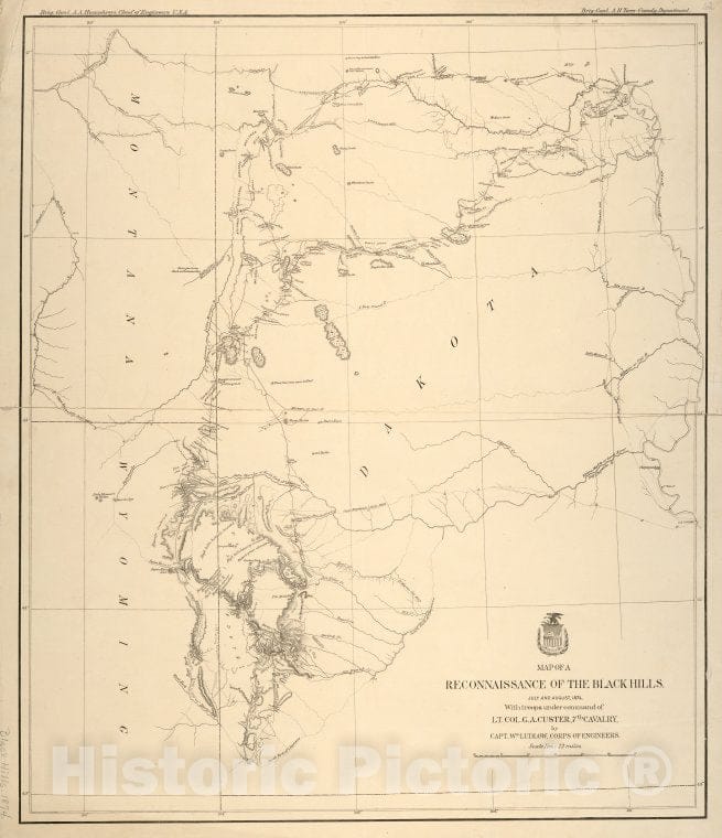 Historic 1874 Map - Map Of A Reconnaissance Of The Black Hills, July And August, 187 - Black Hills (S.D. And Wyo.) - Maps Of North America. - Vintage Wall Art
