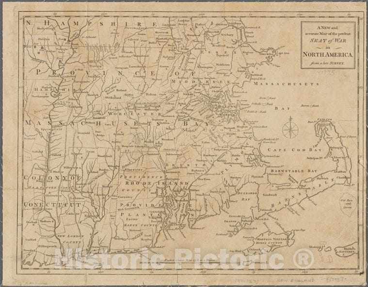 Historic Map - 1775 New England, A New And Accurate Map Of The Present Seat Of War In North America, From A Late Survey
