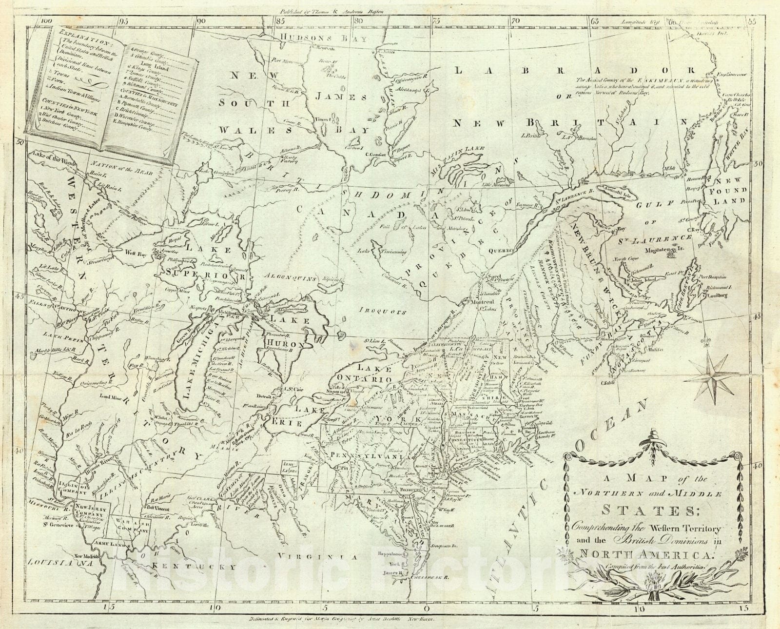 Historic Map : 1793 A Map of the Northern and Middle States: Comprehending the Western Territory and the British Dominions in North America : Vintage Wall Art