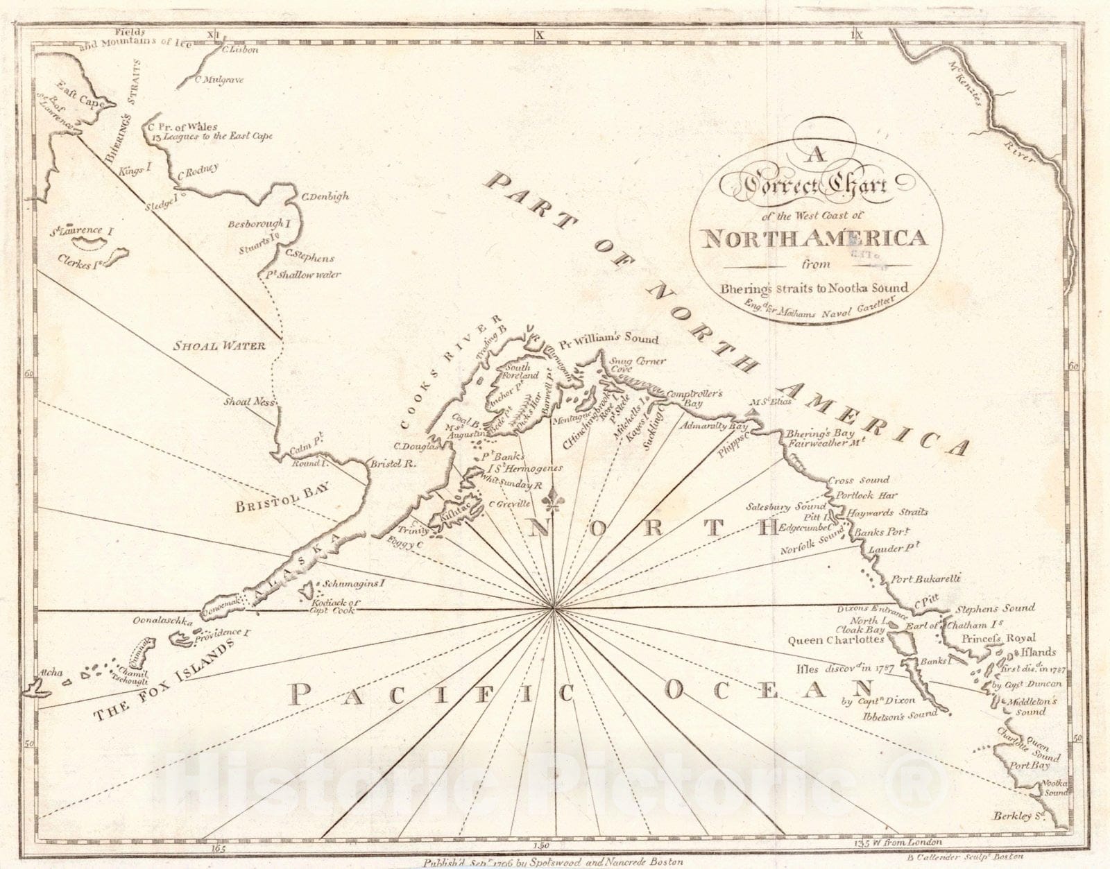 Vintage Map | 1796 A Correct Chart of the West Coast of North America from Bhering's Straits to Nova Scotia | Spotswood and Nancrede