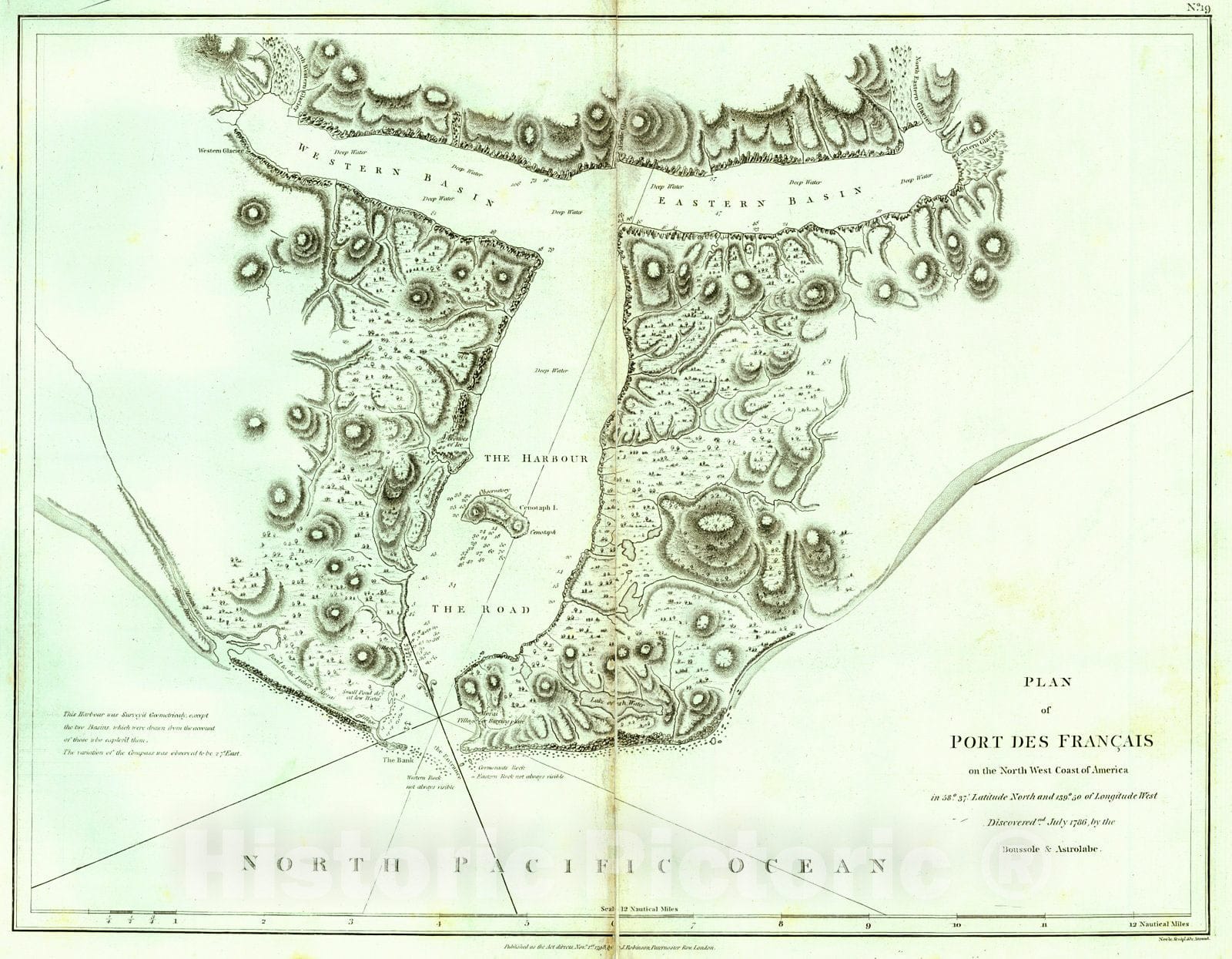 Historic Map : 1799 Plan of Port Des Francais on the North West Coast of America : Vintage Wall Art
