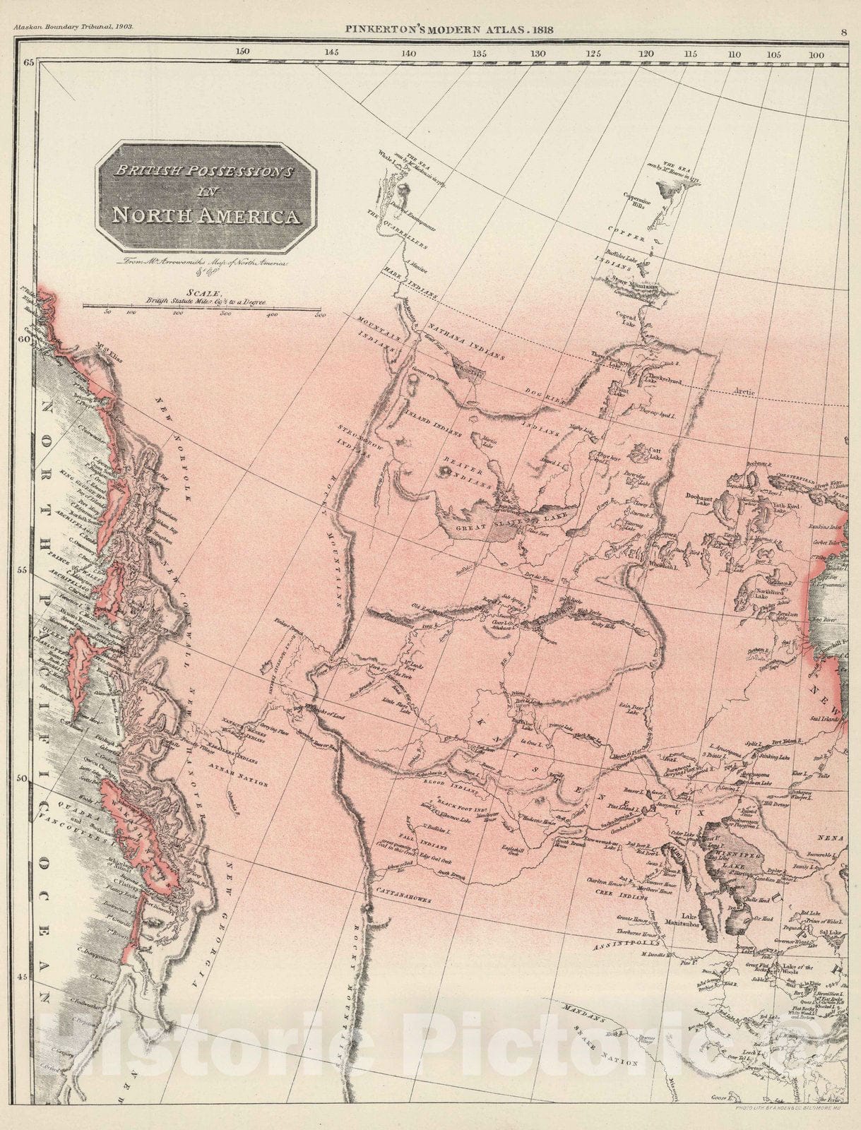Historic Map : 1818 Pinkerton's British Possessions in North America (portion). - Vintage Wall Art