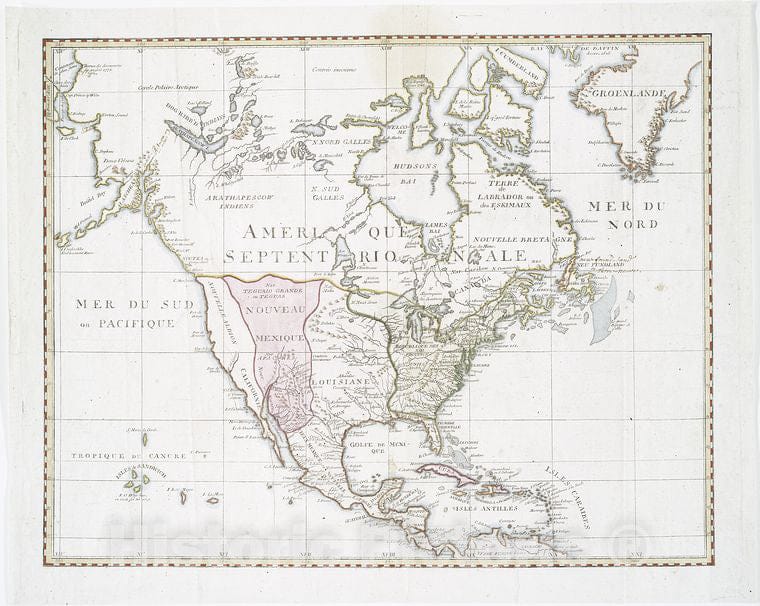 Historic 17-? Map - Amerique Septentrionale. - North America - Maps - Early Works To 1800 - Charts And Maps - Vintage Wall Art