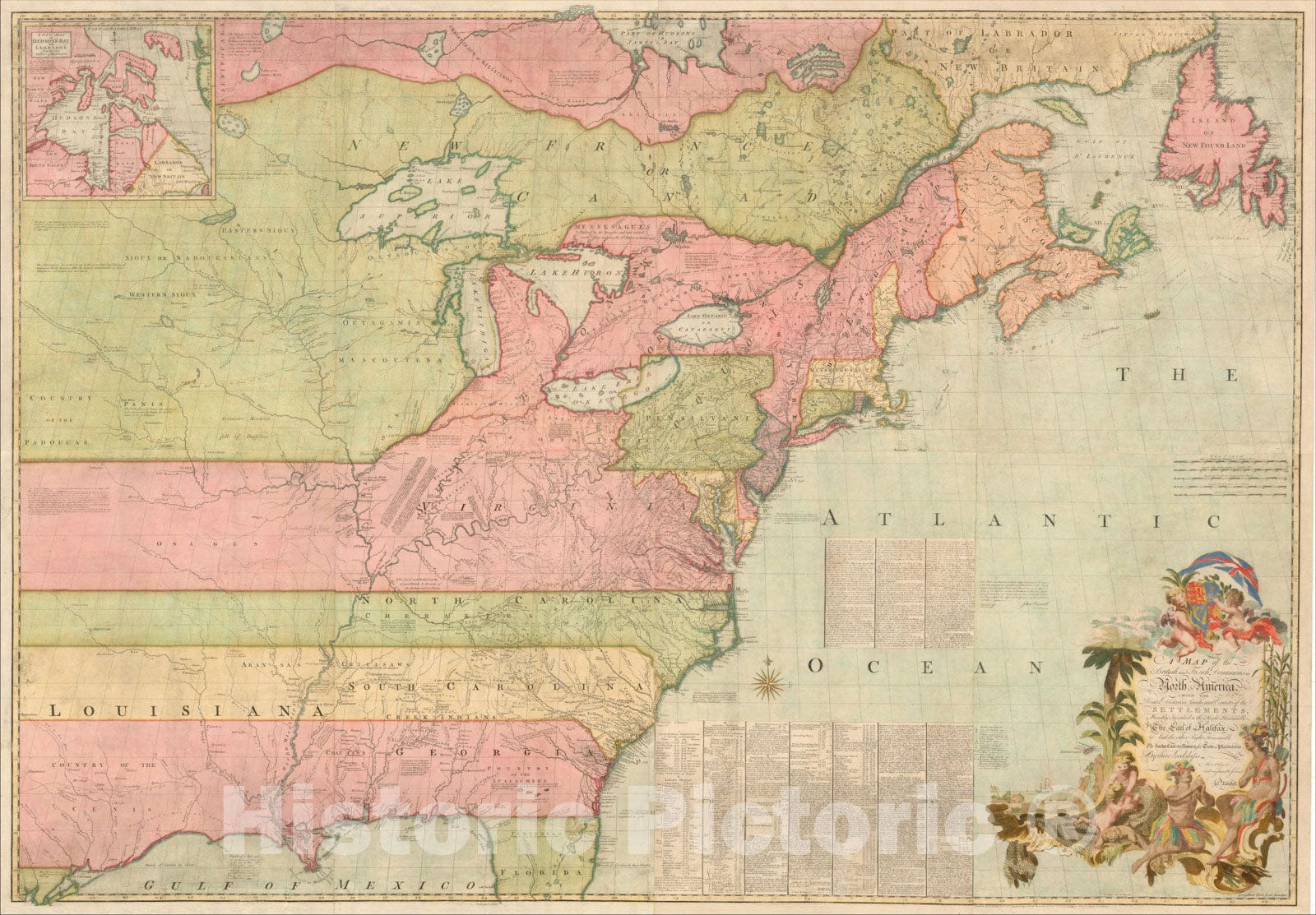 Historic Map : A Map of the British and French Dominions in North America, 1756, John Mitchell, Vintage Wall Art