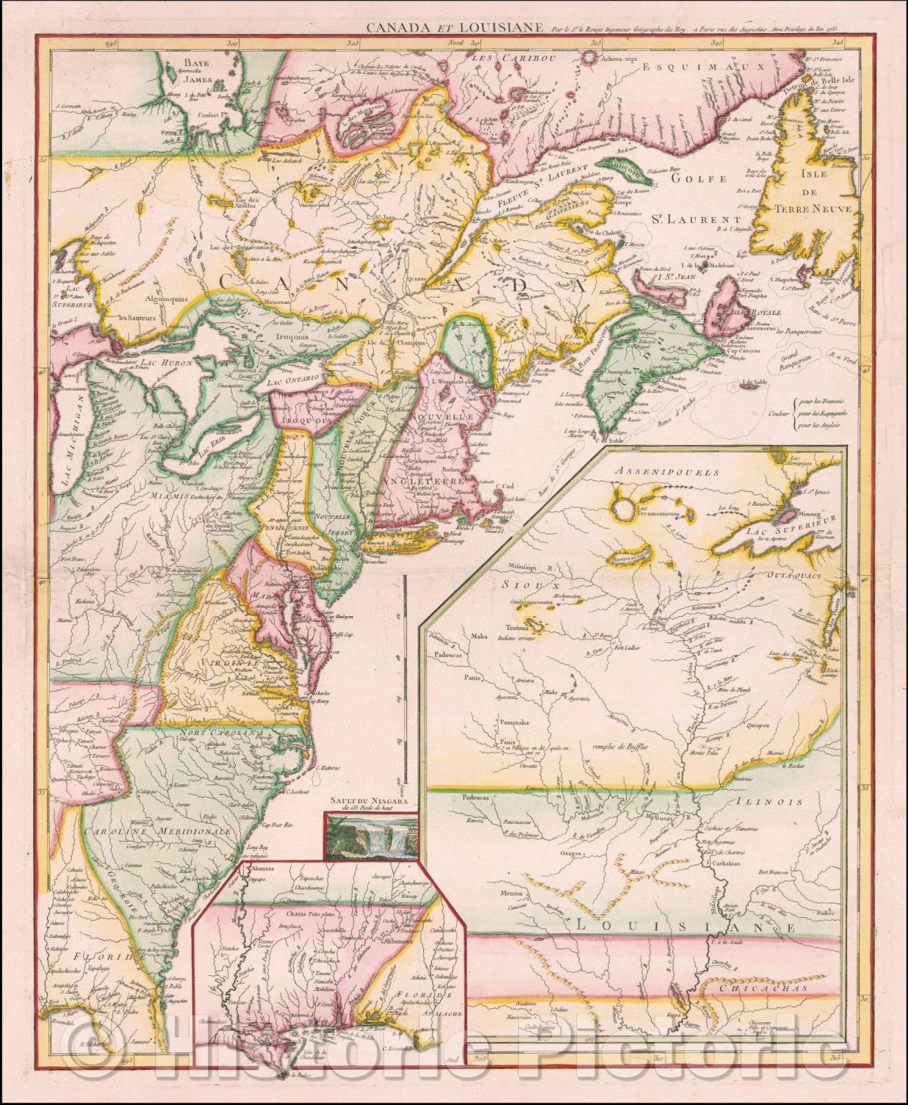 • Historic Map - Canada et Louisiane Par le Sr. Rouge Geographe du Roy/French & Indian War Map of the British and French Colonies in North America, 1755 - Vintage Wall Art