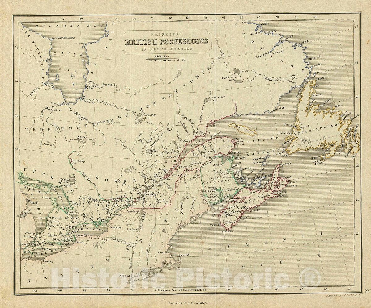 Historic Map : Chambers Map of Canada or The British Possessions in North America, 1845, Vintage Wall Art