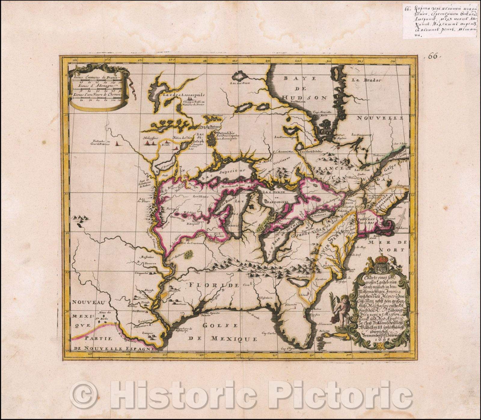 Historic Map - Charte eines sehr grossen Landes nur gantz neulich/Philip Gottfried Saurmans edition of Louis Hennepin's Map of North America, 1698 - Vintage Wall Art