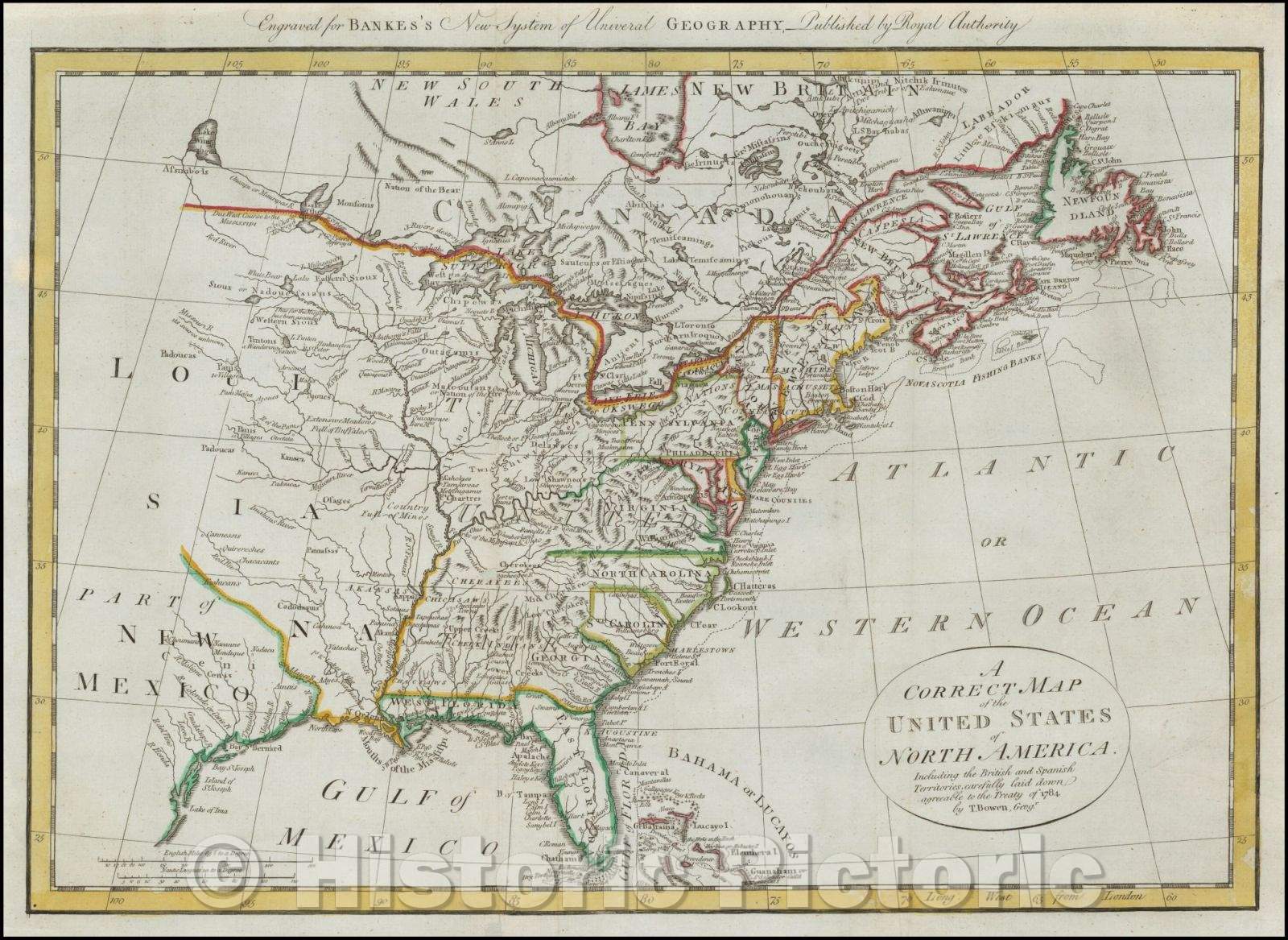 Historic Map - A Correct Map of the United States of North America. Including the British and Spanish Territories, 1787, Thomas Bowen v1