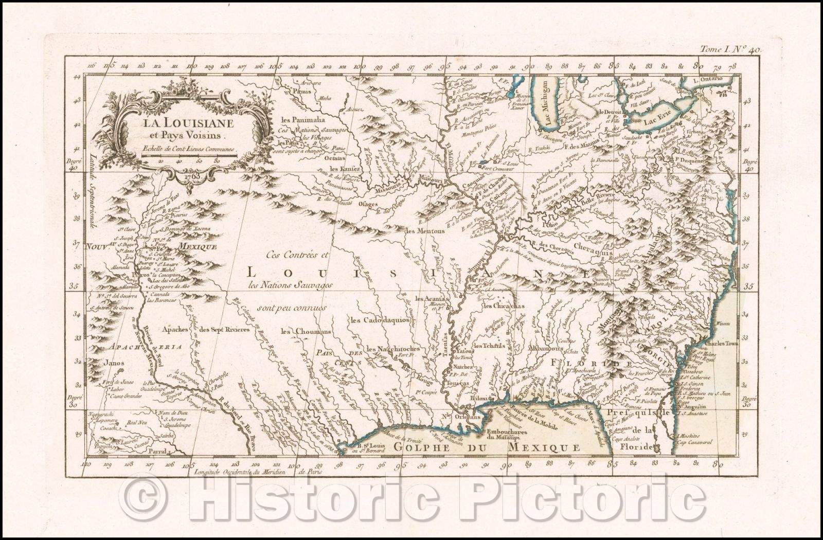 Historic Map - La Louisiane et Pays Voisons/Map of the settled portions of North America, 1764, Jacques Nicolas Bellin - Vintage Wall Art