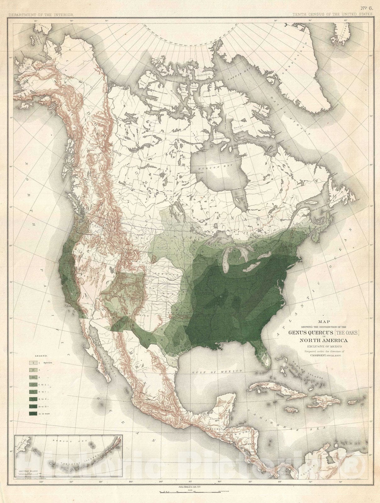 Historic Map : North America Depicting Oak Trees, Sargent Arboreal, 1884, Vintage Wall Art