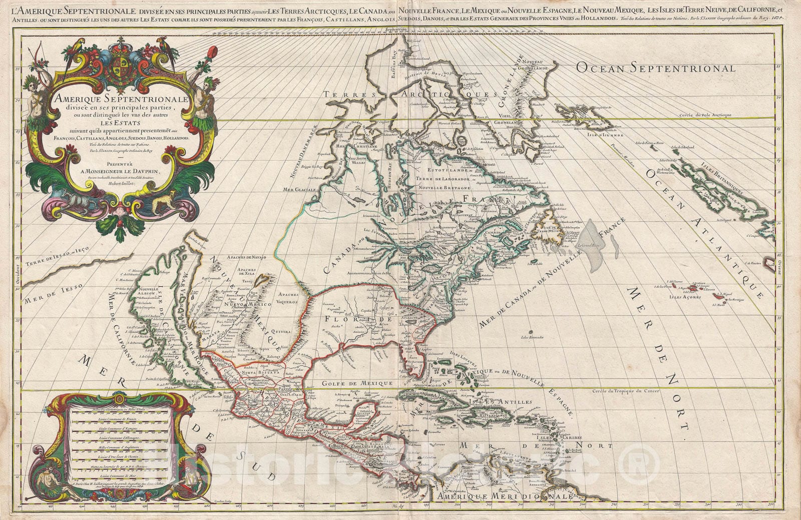 Historic Map : North America "first edition" "California as an Island", Jaillot, 1674, Vintage Wall Art