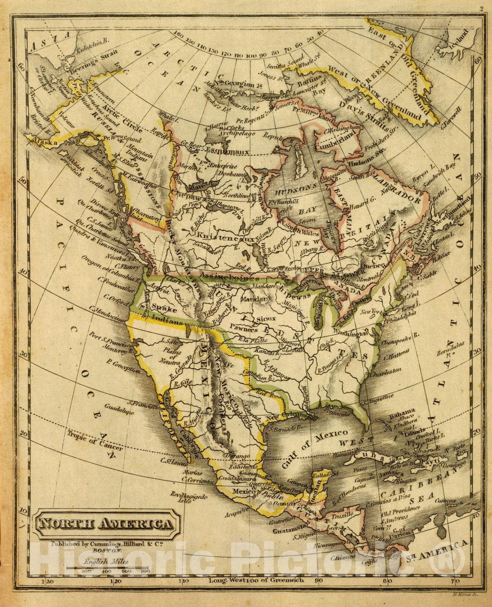 Historic Map : North America. H. Morse, Sc. Published by Cummings, Hilliard & Co, Boston. (1826), 1826 Atlas - Vintage Wall Art