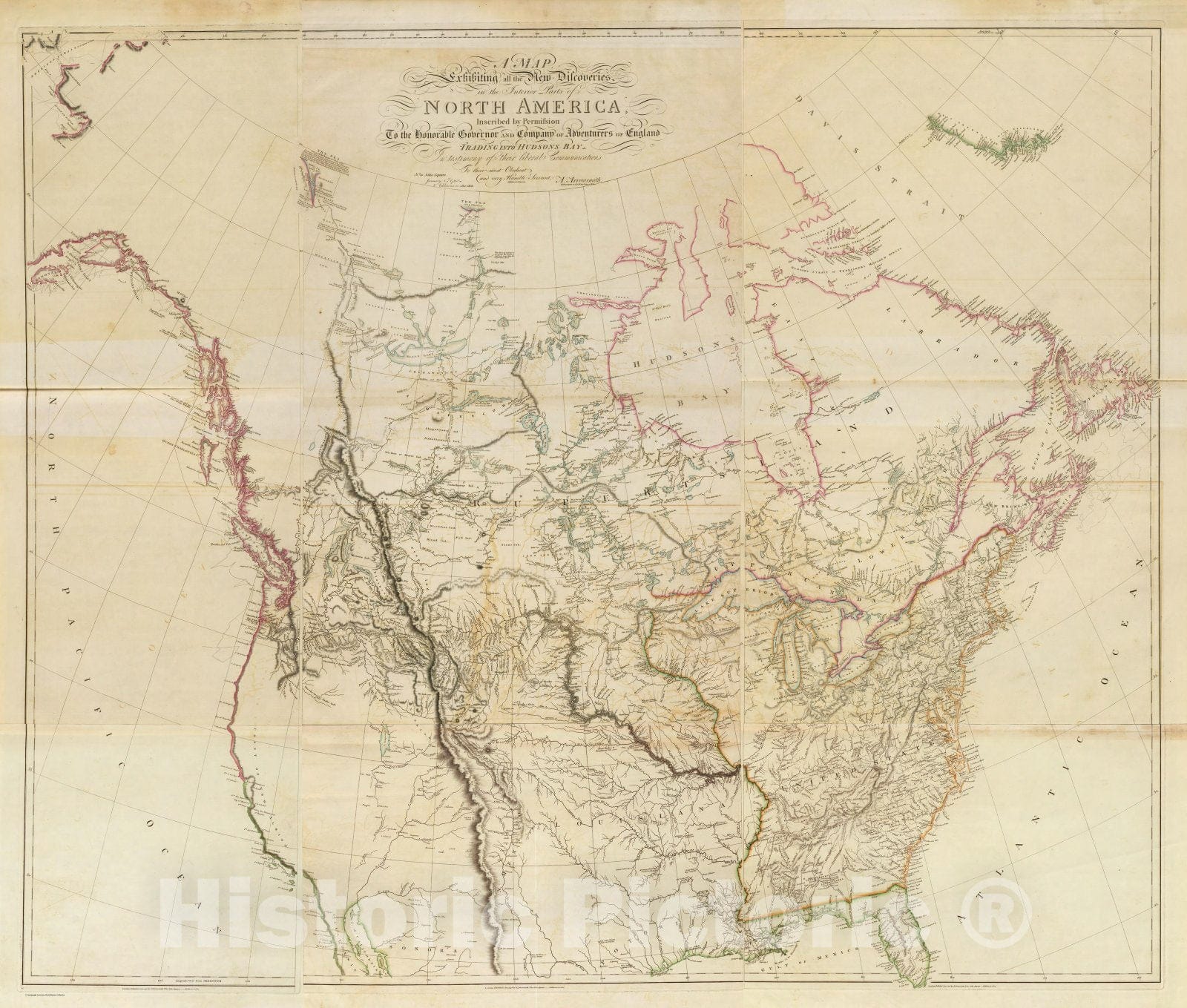 (Composite of) A map exhibiting all the new discoveries in the interior parts of North America, inscribed by permission to the Honorable Governor and Company of Adventurers of England trading into Hudson Bay, in testimony of their liberal communications to their most obedient and very humble servant, A. Arrowsmith, Hydrographer to H.R.H. the Prince of Wales. No. 10 Soho Square. January 1st, 1795 -- additions to 1811, 1818. | Atlas to Thompson's Alcedo; or dictionary of America & West Indies; collated with all the most recent authorities, and composed chiefly from scarce and original documents, for that work, by A. Arrowsmith, Hydrographer to His Royal Highness the Prince Regent. London: Printed by George Smeeton, Great Saint Martin's Lane, Charing Cross. 1819. | See note field above.