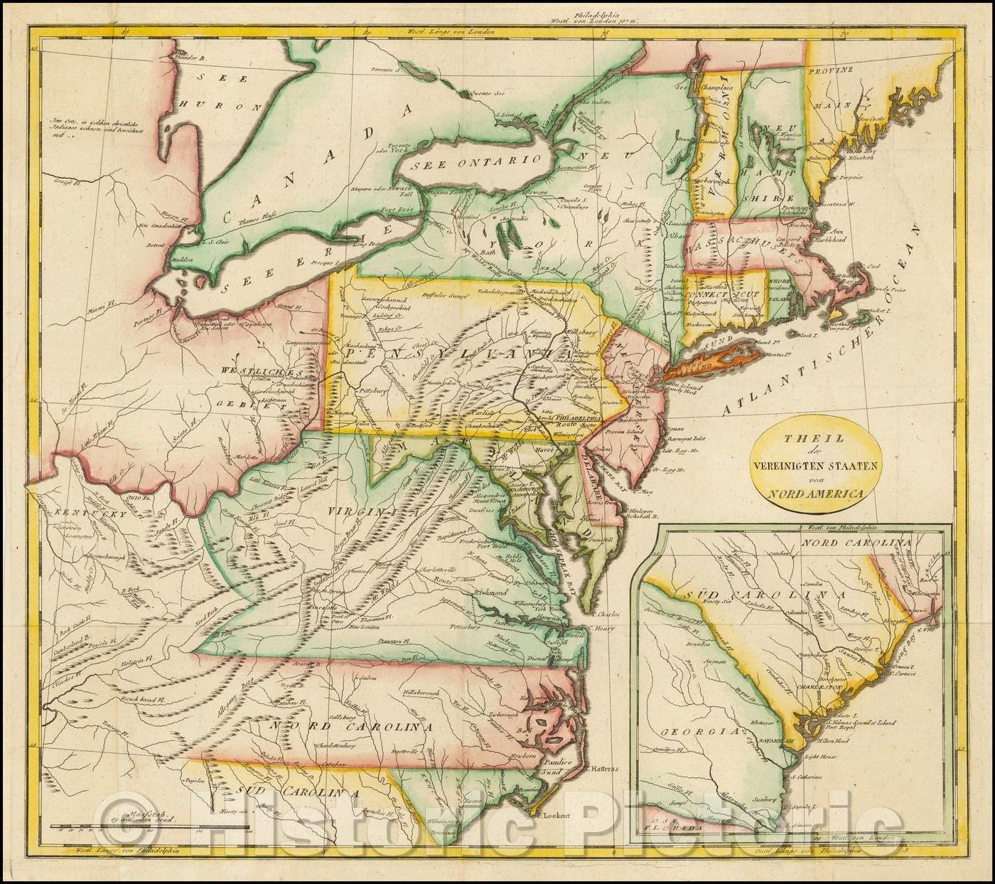 • .Historic Map - Theil der Vereinigten Staaten von Nord America./Part of the United States of North America, 1805, John Stockdale - Vintage Wall Art