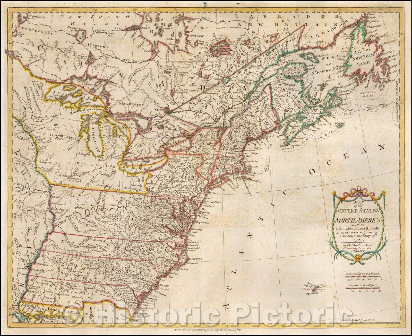 Map of the United States in North America: with the British, French and Spanish Dominions, 1783, Thomas Kitchin