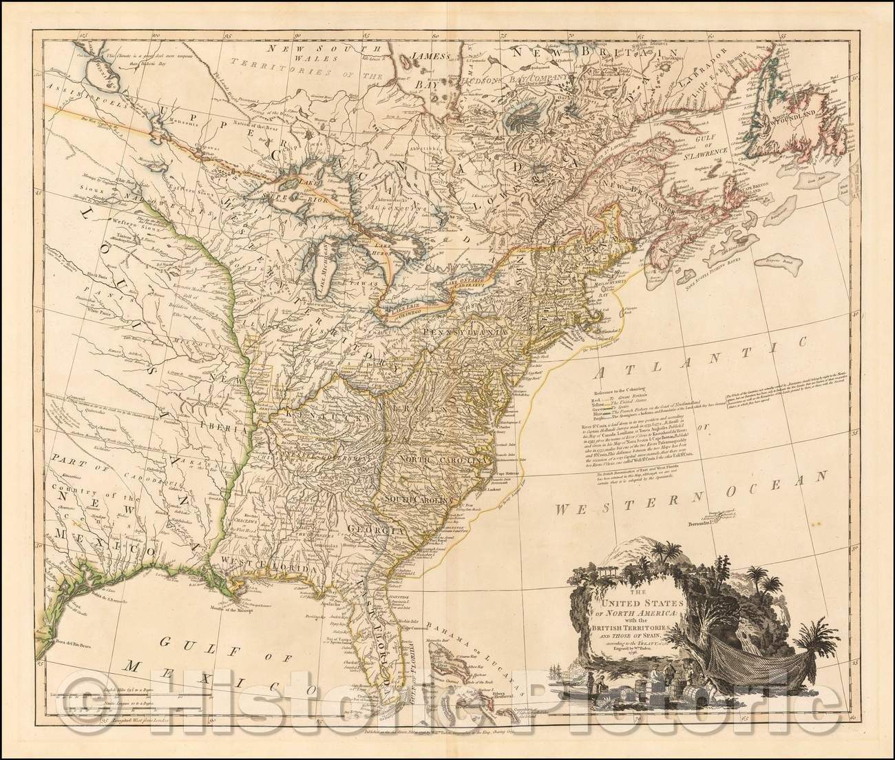 Historic Map - The United States of North America with the British Territories And Those of Spain, 1796, William Faden v3