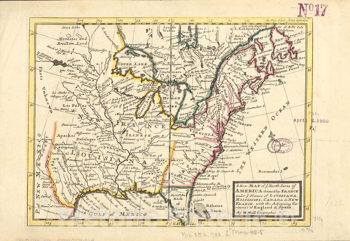 A new map of ye north parts of America claimed by France under ye names of Louisiana, Mississipi, Canada & new France with the adjooyning territories of England & Spain
