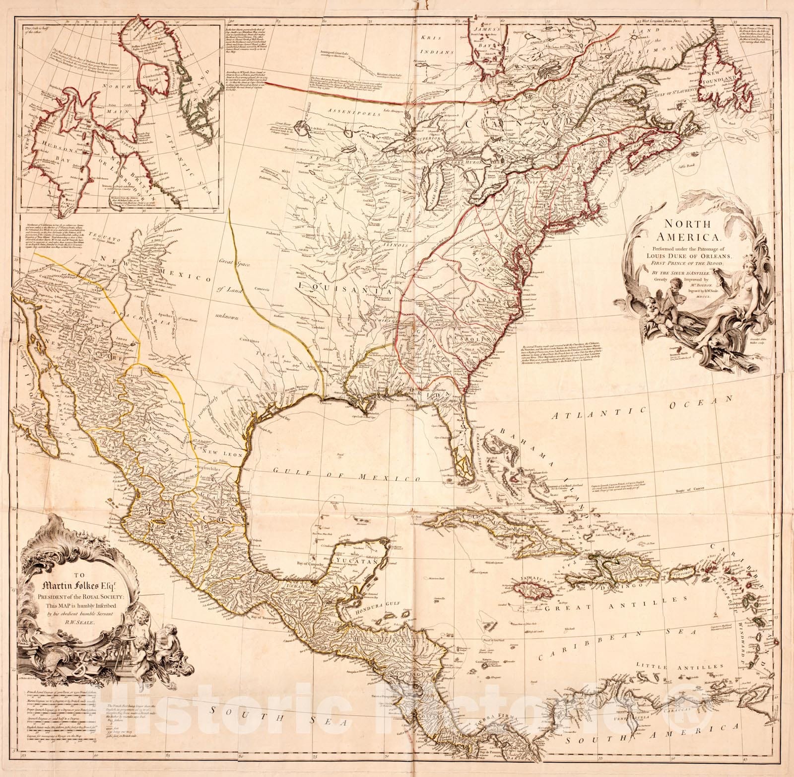 Historical Map, 1750 North America. : Performed Under The Patronage of Louis Duke of Orleans, First Prince of The Blood, Vintage Wall Art