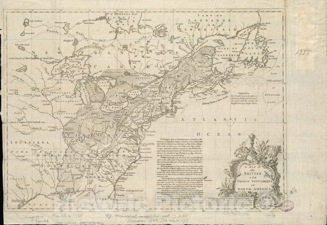 Historical Map, 1750-1759 A map of The British and French settlements in North America, Vintage Wall Art